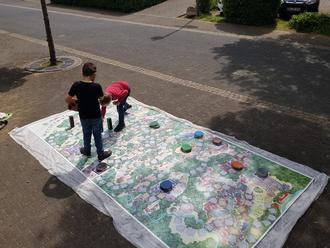 Auf dem großen Raiffeisenspiel lernten anschließend die kleinen Besucher und ihre Eltern Raiffeisens Lebensweg kennen. Sie durchliefen spielerisch die Orte, in denen Raiffeisen gelebt und gewirkt hatte.
