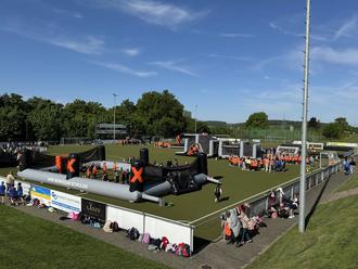 Bereits vor Sonnenaufgang, also in den frühen Morgenstunden des 08. Mai 2025, reiste das 5köpfige Team von TRIXITT mit großem Equipment an und verwandelte den Kunstrasenplatz des Stadions in eine Spiel- und Sportarena der Superlative.