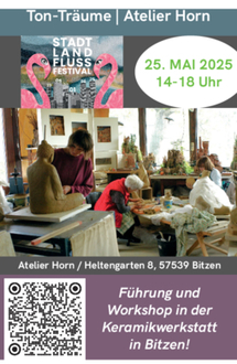 Das Atelier Horn in Bitzen besteht schon über 30 Jahre. Karl Dieter Horn, freischaffender Künstler, hat hier nicht nur Kunstobjekte hergestellt, die in alle Welt verkauft wurden, sondern auch langjährig Kurse abgehalten für die ganze Vielfalt an Menschen, klein vom Kindergarten an, groß bis zum Ruhestand, mit und ohne Behinderung und auch dann und wann Menschen mit Migrationshintergrund.