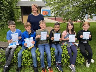 Kurz vor Pfingsten wurden nun mathematisches Denken und der Spaß am Knobeln belohnt. Alle Kinder bekamen von Schulleiterin Julia Fuchs und Konrektorin Petra Siems-Frohn als Anerkennung eine Urkunde und ein Knobel – Puzzle überreicht. In Klasse drei erreichte Philipp Frenzer den dritten Platz der internen Schulwertung, Vincent Lehwald kam auf den zweiten Platz. Siegerin im dritten Schuljahr wurde Emilia Schrör.