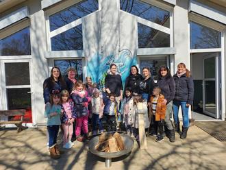 Die Familien waren eingeladen, gemeinsam mit ihren Kindern in der KiTa aktiv zu werden. Es entstand ein Geschichtensäckchen, dessen Geschichte das Kita- Motto „Gemeinsam sind wir stark“ interpretiert. Mit viel Kreativität und Geschick entstanden tolle Sockenpuppenfiguren und die Kulisse für die ausgedachte Geschichte. Die jährlich durchgeführte Feuerpädagogik und Brandschutzerziehung fand mit Feuerexperimenten und einem Lagerfeuer ihren Abschluss. 18 Vorschulkinder wurden während der präventiven Arbeit zu Feuerhütern ausgebildet, konnten am Workshop mit ihren Eltern oder Großeltern die physikalischen Eigenschaften des Feuers erleben und ihr Wissen dazu vertiefen. Nach Stockbrot und Marshmellows erhielten sie ihre Urkunde und das begehrte Feuerhüter- Abzeichen. Die Feuerschale fürs Lagerfeuer spendete der Förderverein der KiTa.