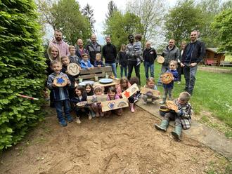 Die Kinder und das Team der Kita bedanken sich beim Förderverein der Kita für die tolle Feuerschale und die finanzielle Unterstützung des Ackerprojektes.