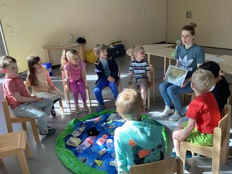 Es wurde gemeinsam gefrühstückt und die verschiedenen Arten der Tonnen erklärt. Jedes Kind durfte selbst Müll sortieren und erfuhren, warum es so wichtig ist, Papier, Plastik, Glas und Restmüll zu trennen.