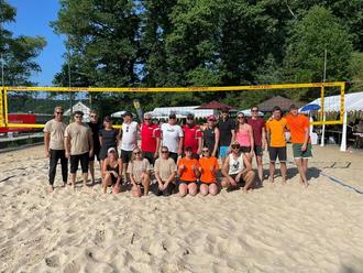 Am Samstag wurde die Hobbygruppe ausgespielt. Die Mannschaften lieferten sich spannende Ballwechsel bei bestem Wetter. In dieser Gruppe setzte sich zum Schluss das Team „Die Sandhüpfer“ gegen „SG Heckenhof-Köln“ durch. Dritter wurde das Team „Die Sandpiraten“ vor „Black Blondies“. Platz fünf belegte die Mannschaft „old and gold“.