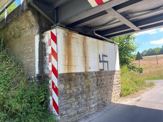Auch wurde eine Garage in der Pferdegasse mit einem Hakenkreuz versehen, und bei einem anderen Grundstück in der Pferdegasse wurde die Regenbogenfahne angezündet. Für die Beseitigung der Schmierereien an der Unterführung musste die Ortsgemeinde mal wieder Steuergelder ausgeben.