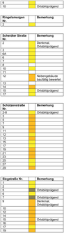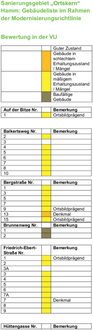 abgestimmt sind. Es handelt sich um die Gebäude, die im abgedruckten Modernisierungsrahmen plan und in der Gebäudeliste als „Gebäude im schlechtem Erhaltungszustand/Mängel“ bzw. „Gebäude in mäßigem Erhaltungszustand/Mängel“ genannt sind.