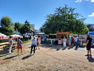Bereits zu Beginn der Informationsveranstaltung um 11 Uhr fanden sich bei strahlend blauem Himmel zahlreiche Interessierte auf dem Dorfplatz ein, die von der Ersten Beigeordneten Petra Wienold-Rapp in Vertretung für den erkrankten Ortsbürgermeister Axel Mast begrüßt wurden. An verschiedenen Ständen erfuhren die Besucherinnen und Besucher neues und interessantes von den Mitgliedern des Ortsgemeinderats zu den lokalen Themen Infrastruktur, gemeindliche Entwicklung und die im Frühjahr 2024 stattfindenden Kommunalwahlen. Anregungen und Vorschläge wurden eingebracht und auch nach dem offiziellen Ende der Veranstaltung wurde weiter diskutiert und Standpunkte ausgetauscht.