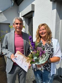 Zusammen mit den Kolleginnen und Kollegen gratulierten Büroleiter Ingo Schöler und Bürgermeister Dietmar Henrich ihr ganz herzlich zur Feierstunde und bedankten sich für ihre Arbeit und ihren Gemeinschaftssinn. Mit letzterem trägt sie wesentlich zu dem allgemeinen, angenehmen Arbeitsklima im Haus bei, so auch der Bürgermeister in seiner als kleine Ode vorgetragenen Ansprache.