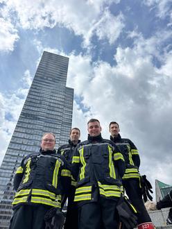 Team 2 – Sören Klein & Felix In het Panhuis stellte sich zum ersten Mal dieser Herausforderung und erreichte mit einer respektablen Zeit von 14:32 Minuten sicher das Ziel – ein starker Einstand, der Anerkennung verdient. „Der KölnTurm Treppenlauf ist jedes Jahr aufs Neue eine körperliche und mentale Grenzerfahrung“, erklärt David Bergmann. „Unter voller Schutzkleidung und mit angeschlossenem Atemschutzgerät (PA) die 40 Etagen hinaufzusteigen, verlangt uns alles ab – aber der Teamgeist und das Ziel, oben gemeinsam anzukommen, tragen einen förmlich nach oben.“