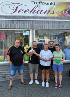 Der Lebenshof wurde bei der Spendenübergabe vertreten durch Dajana und Joshua Hanne, sowie Michael Spang und einen ganz besonderen Gast: Jung-Gänserich Charly, der im Laufe des Besuchs das TeeHaus unsicher machte und sich gleich zum Publikumsliebling mauserte. Seitens des Teehauses nahm die ehrenamtliche Mitarbeiterin Thea Brack die Spendensumme entgegen.