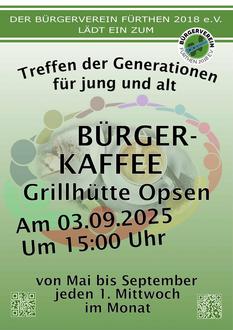 Am Mittwoch, den 03. September 2025, laden wir euch herzlich zum Bürgerkaffee ein. Gemeinsam wollen wir einen stimmungsvollen Jahresabschluss feiern. Das Orga-Team steckt bereits mitten in den Vorbereitungen, damit dieser Nachmittag zu etwas ganz Besonderem wird.