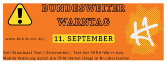 Am Donnerstag, den 11. September 2025, findet in ganz Deutschland der Bundesweite Warntag statt. An diesem Aktionstag erproben Bund, Länder, Kreise und Kommunen gemeinsam die verschiedenen Warnmittel, mit denen die Bevölkerung im Falle von Gefahrensituationen rechtzeitig informiert und gewarnt wird. Auch die Verbandsgemeinde Hamm (Sieg) und die Freiwillige Feuerwehr Hamm (Sieg) machen mit.