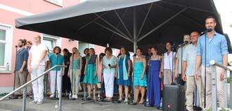 Auf den Chor folgte der Auftritt der Liedermacher "Wunder und Blume". Dahinter verbergen sich Thomas Wunder und Heribert Blume. Das Gitarren-Duo begeisterte mit Musik und Poesie zwischen Lachen und tiefen Gefühlen. Der weitere Verlauf des Abends war von Improvisation und ausgelassener Stimmung geprägt.