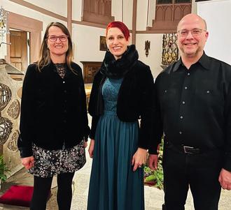Sprecherin Ute Hammer, die Sopranistin Manuela Meyer und Kirchenmusiker Thorsten Schmehr (von links) präsentieren in Hamm den „Kleinen Prinzen“ mit Gesang, Texten und Bildern.
