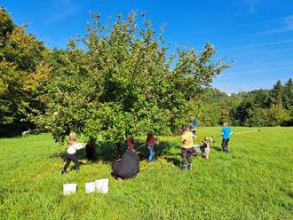 Viele freiwillige Helferinnen und Helfer halfen beim diesjährigen Obstpflücken. Wie viele Liter Apfelsaft schließlich aus der tonnenschweren Arbeit gepresst wurden, erfahren Sie vorne in den Hauptthemen dieser Mitteilungsblattausgabe.