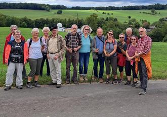 Nach dem Motto: Jeden ersten Mittwoch im Monat wird gewandert, machen sich am Mittwoch, den 3. September, neunzehn Wanderbegeisterte auf den Weg. Die 8,5 km Tour begann um 14.00 Uhr bei der Vierbucher Mühle im Oberbergischen Kreis. Die Tour teilt sich in zwei Rundwanderungen auf. Die erste 1,5 km Runde startet vom Parkplatz leicht ansteigend zum Wanderweg A1, die Tour war mit schönen Aussichten auf Vierbucher Mühle und gegenüber idyllisch gelegenen kleinen Dörfern verbunden. Bergab durch schönen schattigen Laubwald endete die Strecke an der Gaststätte „Zum Mühlenhof". Auf der Außenterrasse wurde eine Rast eingelegt. Eine Einkehr war wegen Ruhetag nicht möglich.