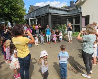 Die neue Leitung der Einrichtung, Claudia Ortheil, begrüßte die Besucherinnen und Besucher und stellte sich bei dieser Gelegenheit vor. Für die kommenden zwei Jahre übernimmt sie die Verantwortung, da die bisherige Leitung, Sabrina Holzer, in Elternzeit geht. In ihrer Ansprache lobte sie das engagierte Team an ihrer Seite, welches ihr den Einstieg in die Kita sehr erleichtert habe.