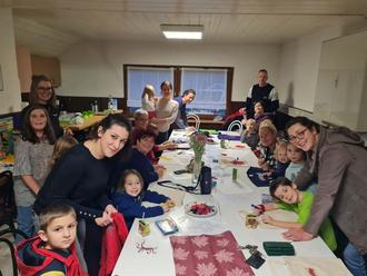 Das Waschhäuschen platze mit über 25 teilnehmenden Kindern, Eltern und Großeltern im wahrsten Sinne aus den Nähten. Im Umgang mit Textilfarbe und Prickelnadel entfalteten sie ihr künstlerisches Talent.