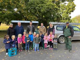 Mit einem lauten und fröhlichen „Danke schön“ bedankten sich die Kinder. Für das nächste Kitajahr ist der Nachschub an Apfelsaft gesichert.