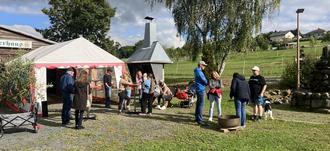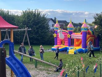Eine Hüpfburg war die Attraktion für die Kinder, während Erwachsene sich dank vieler Fotos an zahlreiche Feste und Vereinsaktivitäten im Dorf erinnerten. Neu zugezogene Bewohner konnten ein wenig aus der Geschichte des Ortes erfahren und ihre Gedanken über die zukünftige Nutzung des Bürgerhauses einbringen. Getränke, Kuchen, Stockbrot, Salat und Würstchen sorgten für das leibliche Wohl, und so blieben viele Gäste bis zum Abschluss des Tages.