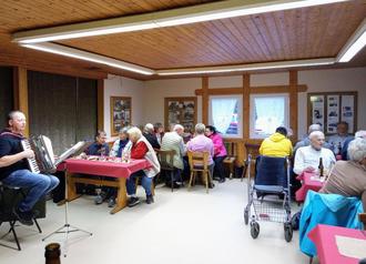 Wie schon im vergangenen Jahr hatte die Ortsgemeinde Birkenbeul zu einem geselligen Abend mit Essen und Unterhaltung eingeladen. Als Musiker mit Leib und Seele spornte Dirk Zorn aus Heimborn mit seiner Ziehharmonika zum Mitsingen, Lachen und Schunkeln an. Von Birgit Merzhäuser wurde eine Bildpräsentation über das letzte Wunderbuchenfest 2006 und den Aufbau der Statthalle in Kratzhahn gezeigt.