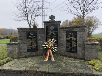 Nach dem Gottesdienst zum Gedenken an die Verstorbenen mit Pfarrer Andreas Stöcker folgt der Gang zum Ehrenmal. Dort erfolgt die Kranzniederlegung durch Ortsbürgermeister Udo Seidler.