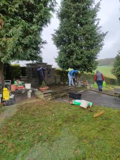 Es ist bestimmt nicht selbstverständlich, doch trotz des schlechten Wetters trafen sich fleißige Helfer zum Arbeitseinsatz auf dem Friedhof in Birkenbeul. Ortsbürgermeister Sven Merzhäuser hatte über die Birkenbeuler WhatsApp-Helfergruppe um Mithilfe gebeten.