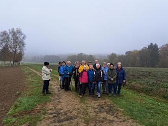 Die Panoramaweg - Wanderung am Mittwoch den 6.November war eine Nebelwanderung. Von Panorama-Fernblicken keine Spur. Immerhin konnte man Mehren und die nähere Umgebung mit der Laubfärbung erkennen. Trotz allem wurde die 5,3km Tour von den17 Teilnehmer: rinnen mit viel Humor und guter Stimmung gewandert. Los ging's um ca.14:00 Uhr oberhalb vom Friedhof zur Landstraße an der Kraamer Mühle vorbei weiter der Kreisstrasse an einem Biotop vorbei durch Wald und Flur auf einem Grasweg zum Dorf Mehren, weiter am Landhaus Mehren zur Kreisstrasse Richtung nach Fiersbach.