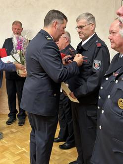Peter Lokay erhielt das Goldene Feuerwehrehrenzeichen für 45 Jahre aktiven Feuerwehrdienst. Über viele Jahre war er in der Kleiderkammer tätig und kümmerte sich dort um die Ausstattung der Kameradinnen und Kameraden mit persönlicher Schutzausrüstung – ein Aufgabenbereich, der hohes Verantwortungsbewusstsein und große Zuverlässigkeit erfordert.