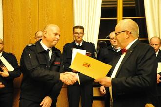 Im der Veranstaltung wurde den Kameraden Heiko Grüttner und Ingo Schmidt für ihre 35-jährige Mitgliedschaft und aktiven Dienst in der Freiwilligen Feuerwehr Hamm (Sieg) das Ehrenzeichen des Landes in Gold überreicht.