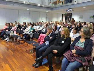 Referentin Lucia Stupperich vom Kinderschutzdienst für den Landkreis stellte ihren Dienst vor sowie verschiedene Arten von Gefährdung des Kindeswohls sowie die Anzeichen, die sich im Kita-Alltag zeigen können. Im Gespräch mit dem Plenum wurde deutlich, dass den Erzieherinnen und Erzieher die Problematik sehr bewusst ist und sie mannigfaltige Anzeichen zu deuten wissen.