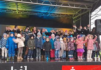 „Guten Tag, liebe Leute!“, grüßten die Kinder - natürlich die Hauptpersonen des Tages - ihre Gäste singend von der Bühne herab, später traten noch die Vorschulkinder mit einem selbst erfundenen Stück auf. Ein Tanz der Kinder war zu sehen, doch die Kleinen aus der Kita trugen nicht nur zur Unterhaltung bei, sondern wurden auch selbst von einem Animateur, beim Kinderschminken und bei einer Kinderdisco unterhalten.