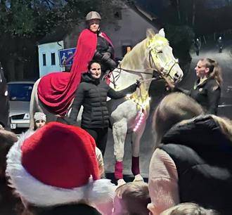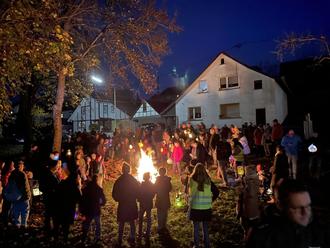 Pünktlich um 17.30 Uhr versammelten sich die Kinder und ihre Eltern mit ihren selbstgebastelten bunt beleuchteten Laternen zum Laternenumzug, der von Sankt Martin hoch zu Ross angeführt wurde. Sebastian Degen begleitete mit seiner Gitarre die, aus voller Kehle singende Schar, durch die Parkstraße über die Bahnhofstraße in Richtung Herzberg und schließlich zurück zum Ausgangspunkt. Die Anwohner, dieser Straßen, hatten den Weg mit Kerzen ausgeleuchtet und brachten so die Kinderaugen zum Strahlen.