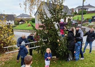Am Freitag vor dem ersten Advent lud der Ortsbürgermeister Jürgen Mai die Kindertagesstätte „Tausendfüßler“ zum traditionellen Tannenbaumschmücken ein.