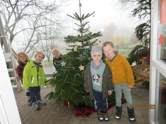 Auch der Tannenbaum an der Kita soll verziert werden. So machten sich die Vorschulkinder auch hier ans Werk und zauberten einen schönen Weihnachtsbaum.