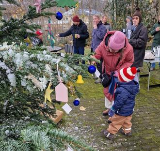 Großeltern, Eltern und Kinder kamen gern und genossen trotz Kälte das weihnachtliche Angebot. Die Kinder begleiteten das Aufstellen und Schmücken des Weihnachtsbaumes mit Begeisterung und hängten selbstgebastelten Baumschmuck auf. Gerne nahmen sie Geschenkkärtchen vom Baum und suchten sich anschließend ein kleines Geschenk aus.