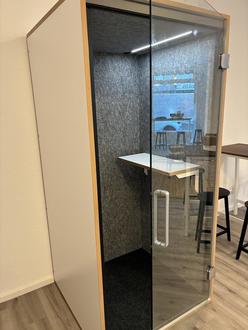 "Nicht für andere Ohren bestimmt!" - In der Silence-Box können Nutzer:innen des Co-Working Space vertrauliche Calls wahrnehmen.