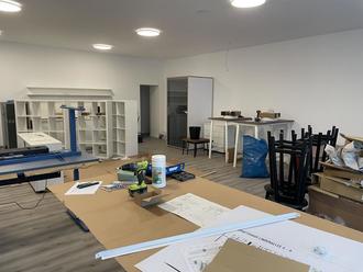 Nachdem die Sanierungsarbeiten in der Lindenallee 6 von Hamm (Sieg) Anfang November weitestgehend abgeschlossen waren, konnte die Möblierung des Dorfbüros an zwei Tagen mit tatkräftiger Unterstützung (aus der Bauverwaltung und dem Bauhof) fertiggestellt werden. - Der planmäßigen Eröffnung des Co-Working Spaces zum ersten Dezember stand danach nichts mehr im Wege!