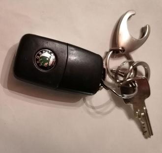 Unter anderem befindet sich daran ein Autoschlüssel für einen PKW der Marke Skoda.