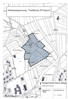 Der Ortsgemeinderat der Ortsgemeinde Hamm (Sieg) beschloss in seiner Sitzung am 16.01.2025 gem. § 2 Abs. 1 BauGB die Aufstellung des Bebauungsplanes Nr. 34 „Freiflächen PV Hamm“.