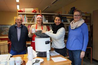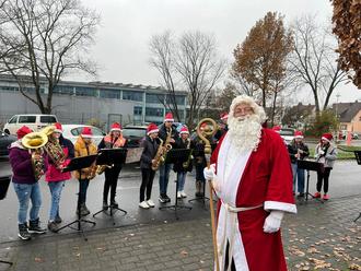 Gegen Mittag tauchte dann auch der Nikolaus auf und verteilte Geschenke. Die bestanden einmal nicht aus Süßigkeiten, sondern aus Mandarinen und Tattoo-Stickern. Und plötzlich war dann auch noch Weihnachtsmusik live zu hören: Die Bläserklasse der IGS hatte den Nachbarn einen Überraschungsbesuch abgestattet.