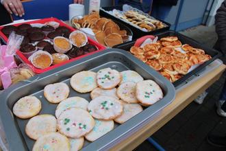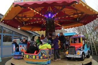 Und genau am Nikolaustag war es dann so weit. Das Schausteller-Unternehmen Frankholz hatte sein Karussell und einen Stand mit leckeren Süßigkeiten aufgebaut, es gab heißen Kakao (nach Wahl mit oder ohne Sahne) zu trinken. Kuchen, verkauft von Eltern, und Hotdogs am Stand der IGS-Abiturienten komplettierten das Angebot.