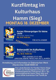 Einmal im Jahr, rund um den 21. Dezember, verwandeln sich landauf, landab die unterschiedlichsten Orte in temporäre Kinos. Anlässlich der längsten Nacht im Jahr werden dort Kurzfilme zu verschiedenen Themen gezeigt. Das Lokale Bündnis für Familie Hamm (Sieg) wird in diesem Jahr nun am 18. Dezember das Kulturhaus in ein Kino verwandeln.