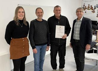 Bürgermeister Dietmar Henrich ließ es sich auch hier nicht nehmen, dem Jubilar persönlich die entsprechende Urkunde zu überreichen und ihm für seine langjährige Treue zur Verbandsgemeinde zu danken. Die Grüße des Personals überbrachte Laureen Kahn. Auch die Lehrkräfte und weitere Beschäftigte in und um die Grundschule Etzbach, die mit Peter Fast zusammenarbeiten, gratulierten zum Jubiläum und tauschten kleine und größere Anekdoten aus 25-jähriger Tätigkeit als Schulhausmeister aus.