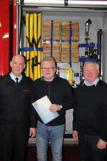 Feuerwehrmann Peter Brenner wurde in die Alters- und Ehrenabteilung verabschiedet. V.l. n.r.: Alexander Müller, Peter Brenner, Udo Seidler.