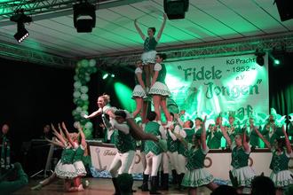 Ein absolutes Highlight der Sitzung war wie eh und je der Auftritt des Tanzcorps der Fidelen Jongen: Mit dem Bezwingen schwindelerregender Höhen, einer akrobatischen Hebefigur nach der anderen und einem rundum starken Team, boten sie dem begeisterten Publikum einen atemberaubenden Auftritt.