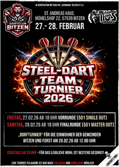Der Dartclub Bitzen und der TuS Bitzen laden alle herzlich ein, Teil dieses sportlichen Ereignisses zu werden – ob aktiv an der Scheibe oder als unterstützender Zuschauer.