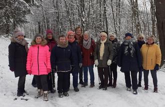 Der Text im Jahresprogramm 2023 der LandFrauen im Bezirk Hamm/Sieg machte seinem Namen alle Ehre. Es hatte in den Tagen vor der Wanderung geschneit, und die Landschaft bot ein winterliches Bild. Treffpunkt zur Wanderung war das Kulturhaus Hamm/Sieg, von dort aus wurden Fahrgemeinschaften gebildet, um nach Marienstatt zu fahren. Nach der Ankunft und Begrüßung machte sich die Gruppe auf die Wegstrecke. Der Rundwanderweg hatte eine Länge von ca. 6 km und war gut zu begehen. Der verschneite Wald bot ein herrliches Bild. Es war ein sehr schöner Nachmittag. Nach Kaffee und Kuchen wurde dann der Heimweg angetreten.
