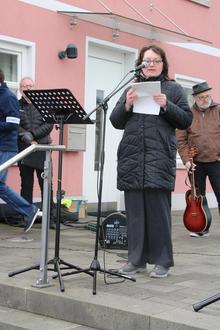 Diese und andere Gräueltaten versuchen die Bedeutung Demokratie und Menschlichkeit zu untergraben. Doch „Jeder tote Soldat ist einer zu viel“, gemahnte Aufderheide in ihrem Wortbeitrag, während Jörg Brück ebenfalls sang: „Wär‘ es nicht schöner zu erleben, dass sich die Menschheit respektiert, Vernunft gewinnt und der Hass verliert?“