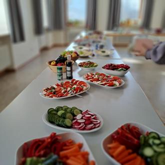 Der Vormittag begann um 9:30 Uhr mit einem gemeinsamen Anstoßen, bevor die Teilnehmerinnen bei einem reichhaltigen Frühstück ins Gespräch kamen. In entspannter Runde wurde gelacht, erzählt und die Gemeinschaft im Dorf genossen. Anlässlich des Weltfrauentags gaben Plakate, Bücher und Zitate berühmter und inspirierender Frauen zusätzliche Gesprächsanlässe.